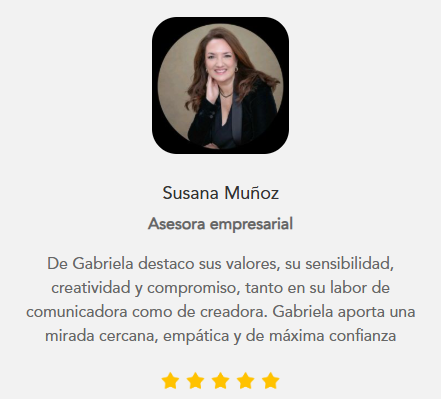 De Gabriela destaco sus valores, su sensibilidad, creatividad y compromiso, tanto en su labor de comunicadora como de creadora. Gabriela aporta una mirada cercana, empática y de máxima confianza